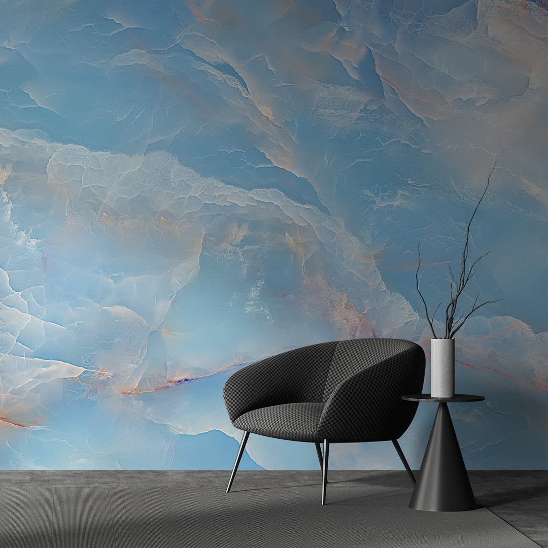 Marble Sky Celestial Blue Wallpaper with Luminous Veins