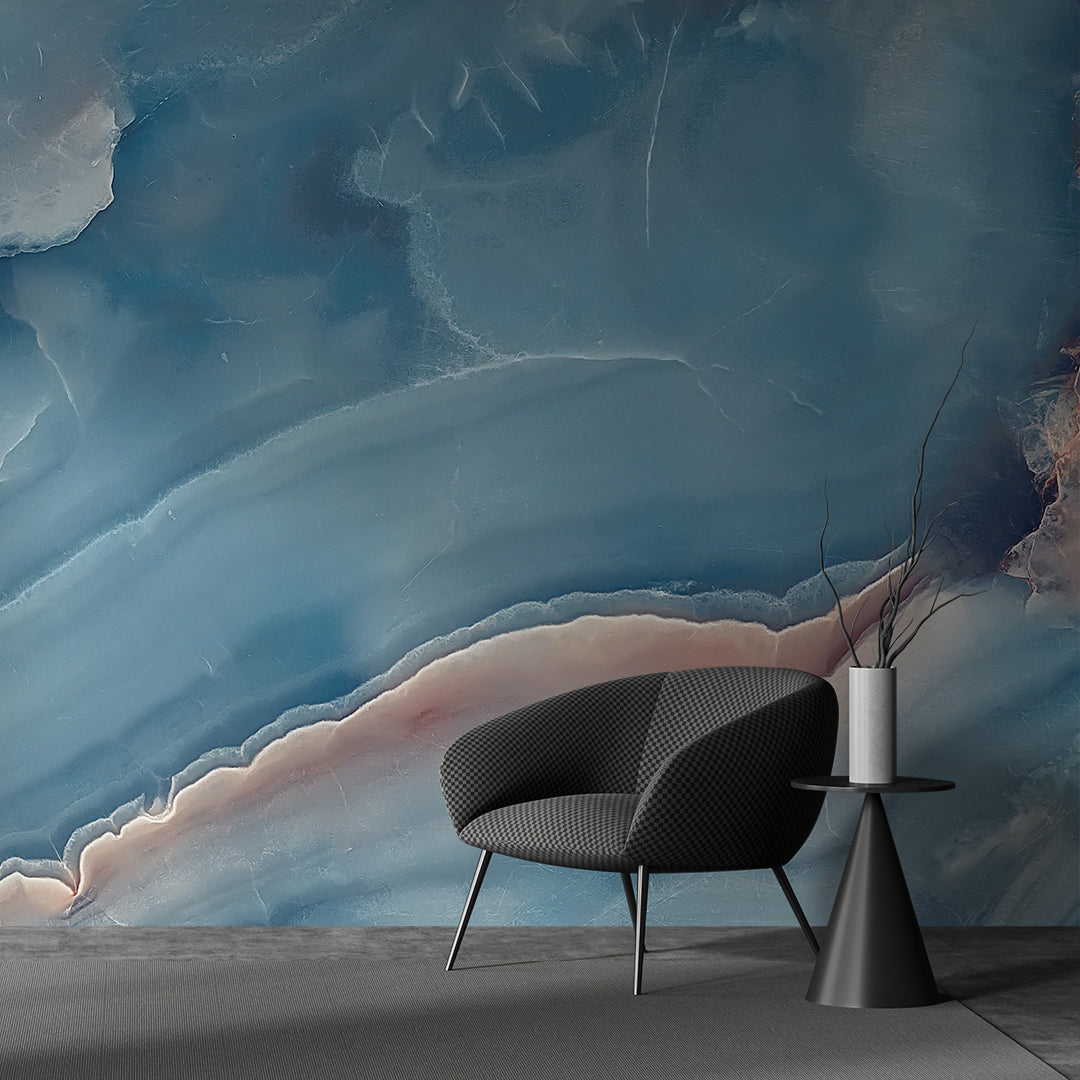Transform your walls into a tranquil sanctuary with this sophisticated wallpaper design. Undulating waves of serene blue create a mesmerizing visual rhythm, while delicate pearly veins shimmer subtly throughout, adding depth and luminous elegance. Perfect for creating a calming atmosphere in bedrooms, bathrooms, or living spaces, this wallpaper combines contemporary artistry with timeless appeal. The interplay of color and texture invites contemplation and brings a sense of peaceful luxury to any room.